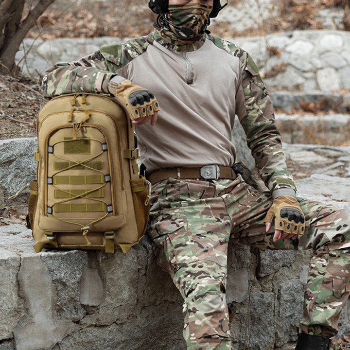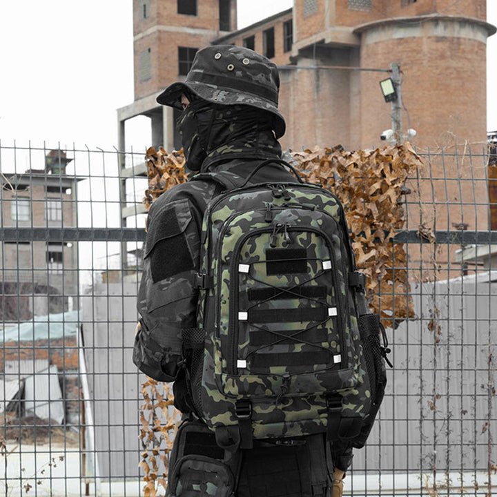 - The tactical backpack is equipped with MOLLE system in the front used to hang additional tactical bags or survival equipment for daily use as a 3-day assault backpack.