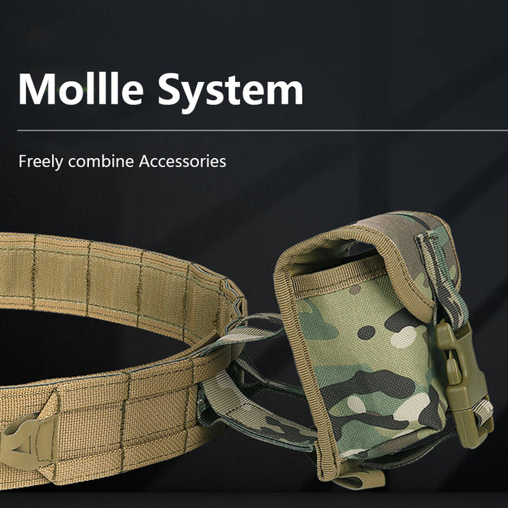 The Elite Survival 8 Set Pro Quick Release Tactical Molle Belt provides a strong, stable platform for your Multifunctional use. Modular versatile design for police, security officers, law enforcement. This multifunctional belt can also be used as a practical belt, combat belt, battle belt, police weapon belt, and tactical equipment. Made from 1000D polyester, it has good tear resistance. Different and multifunctional pockets can be removed so you can choose what you need. It can also be used as a normal everyday belt (fitting on its pants) when you remove all of the bags.