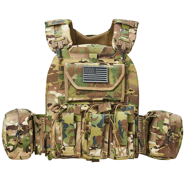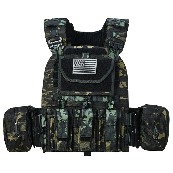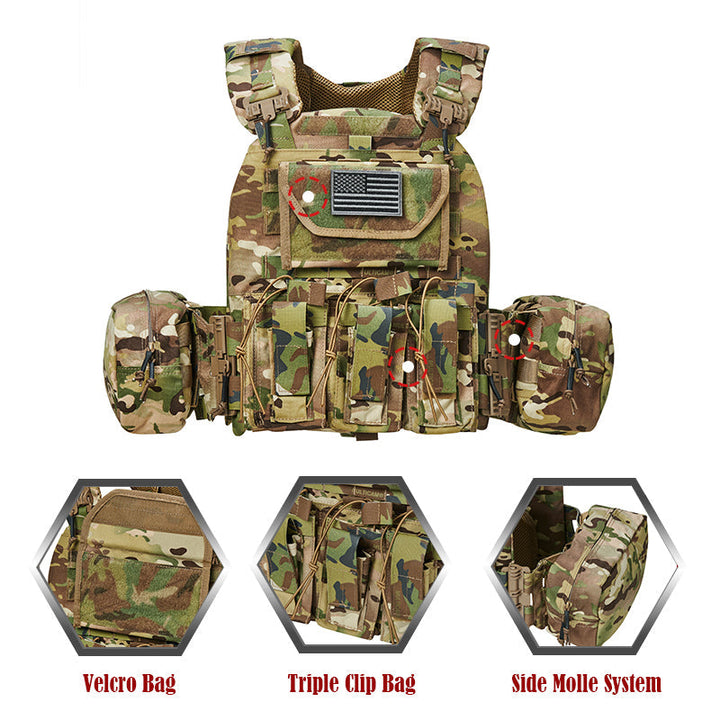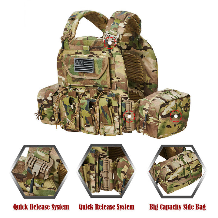 All Mission Quick Release Assault Tactical Vest is a combat-ready plate carrier designed for the best outcome in all types of tactical situations. Modular, Low Profile, and feature-packed. The vest includes 2 front mag pouches and 8 side pockets. It also carries a full-body MOLLE system for you to add on other essentials. This vest is made of 500D nylon with multiple patch panels and reinforced shoulder straps, which make it able to withstand any type of combat situation.
