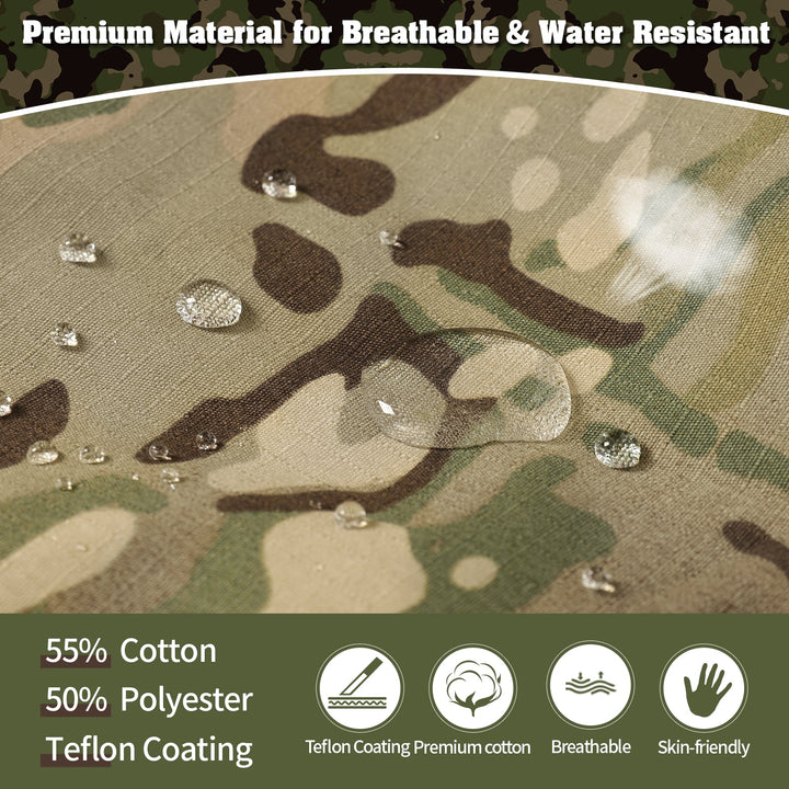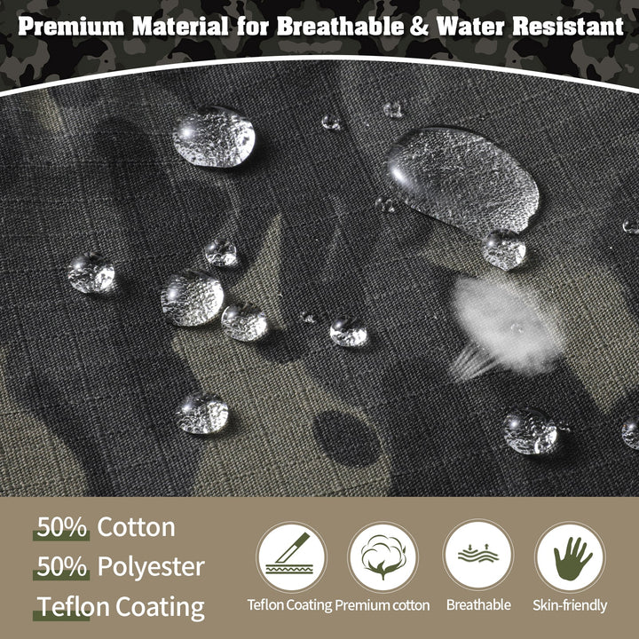 - Fabric: 50% Cotton, 50% Polyester(4-way stretch-woven accents ripstop clothing)