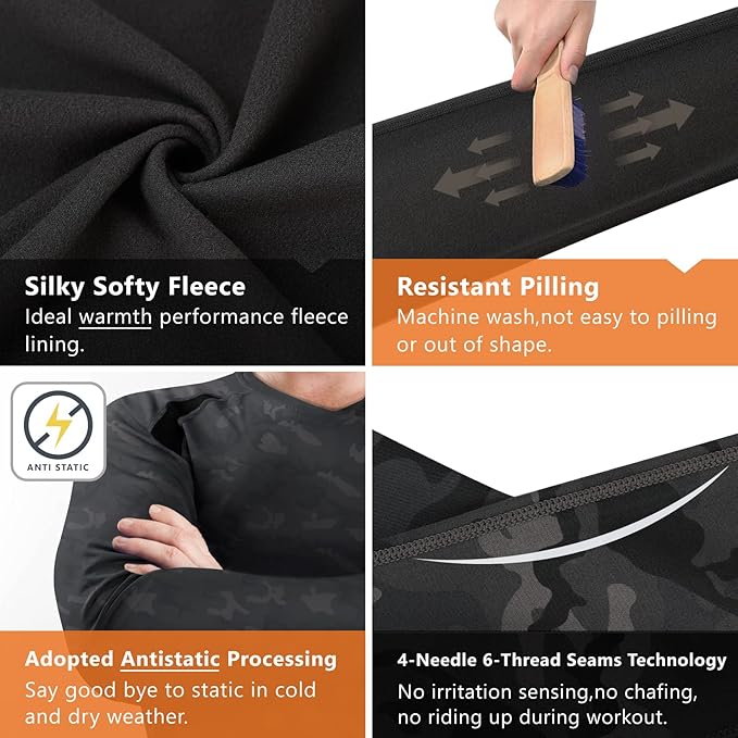 Made from 90% polyester and 10% spandex super soft fabrics, Men's Camouflage Thermal Underwear Tactical Sports Shapewear Set helps reduce pilling and shrinkage. Midweight thermal long underwear set for men, crafted from lightweight microfleece (not a bulky base layer), which will keep you snug and warm also to retain body warm. Ultra moisture wicking fabric moves sweat away from your skin and break them down for super swift evaporation, making the thermal Long Johns extremely breathable and odor-resistant.