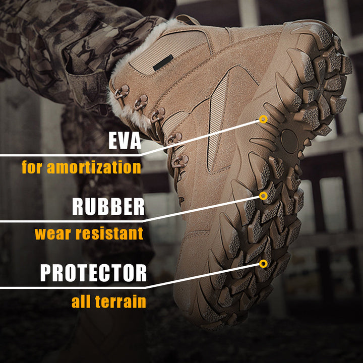 When traversing demanding terrain in rough climates, this Men's Summit X Tactical Outdoor Boots High Top Military Boots provides superb functionality, arch support, and comfort. Its Polyurethane and Plush upper with fore and back bumper in toe and heel, enhance the hardness and strength, for long-lasting support and water-resistance. Durable, lightweight, breathable, strong grip and protective, all in one. Whether in jungle, desert or in duty work, you’ll need these boots to provide you maximum comfort and long-lasting. Tactical design with urban fashion style, making it practical to outdoor and city life.