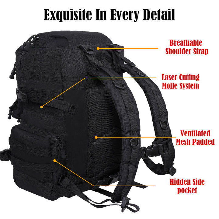 - The molle tactical backpack has a molle system, Molle webbing throughout for attaching additional tactical pouches.