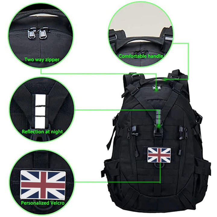 TWS Outdoor Hiking Pack Assault Backpack is a very popular multipurpose backpack, suitable for different people, suitable for various occasions, can be used to travel, trekking, hunting, hiking, and other outdoor activities. The molle backpack designed with front & side molle system. It will be easy to add more molle pouches or gear to expansion the capacity and loading. The hiking backpack is designed with reflective straps, which can reflect the lights making it easier for people to notice, it will make your hiking, and cycling safer while you traveling at night.