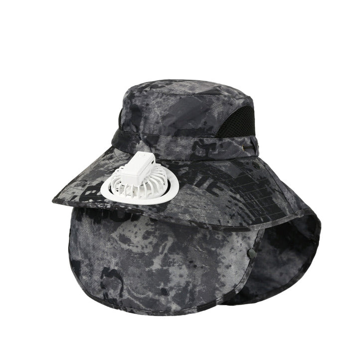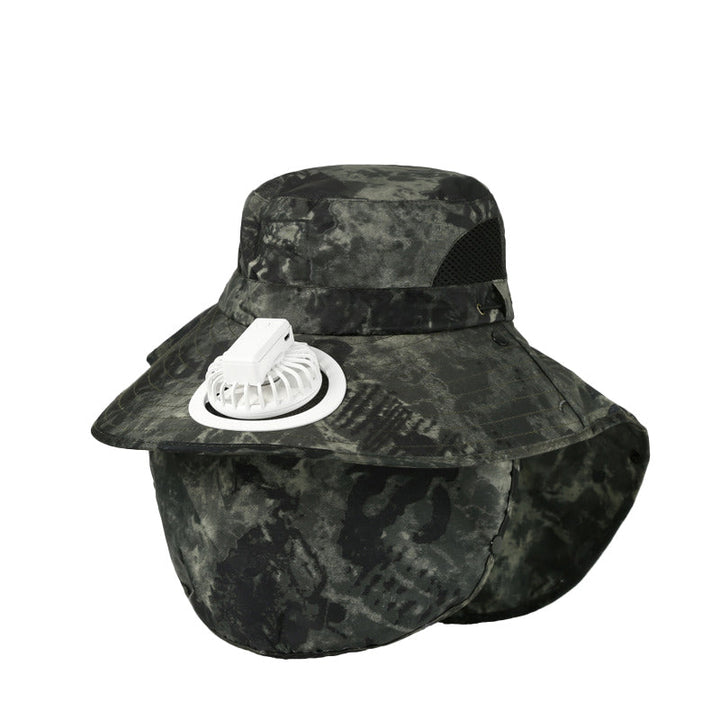 Experience ultimate comfort and protection with this multifunctional outdoor hat, designed to keep you cool and shielded during all your adventures. Equipped with a dual USB charging port, it ensures reliable power for the built-in silent fan, even on cloudy days or at night. The 3-speed adjustable fan delivers personalized cooling with low, medium, and high settings, allowing you to stay refreshed without any noise disturbance. Featuring an oversized brim that offers 360° UPF 50+ sun protection, it effectively guards your face and neck from harmful UV rays. Made from ultra-light, breathable materials and lined with sweat-absorbing mesh, this hat is crafted for maximum airflow and long-lasting comfort. Whether you're fishing, hiking, gardening, camping, cycling, or enjoying a day at the beach, this hat is your ideal companion – offering up to 3 hours of cooling relief on a full charge so you can stay cool and protected anytime, anywhere.
