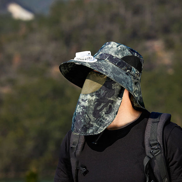 USB Charging Powered Fan Hat UPF 50+ Protection Fishing Cap with Sun Protection Face Mask
